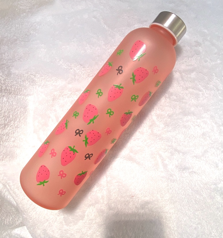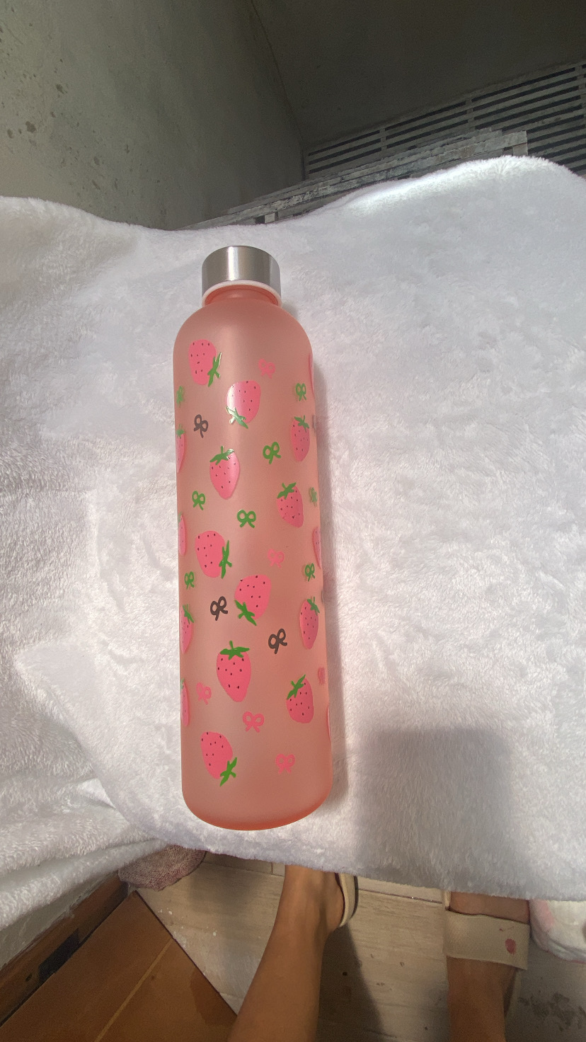 Botella de agua de 1000ml con diseño de fresa. (27cm x 7cm)