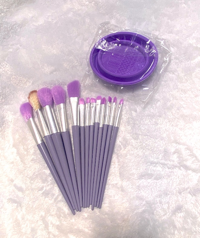 Brochas de maquillaje con tazón de limpieza, cerdas de nailon. (set de 13 brochas)