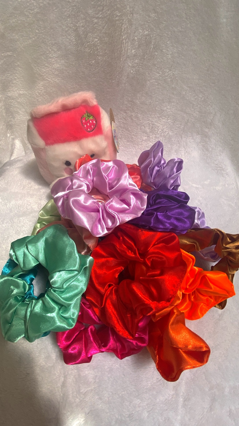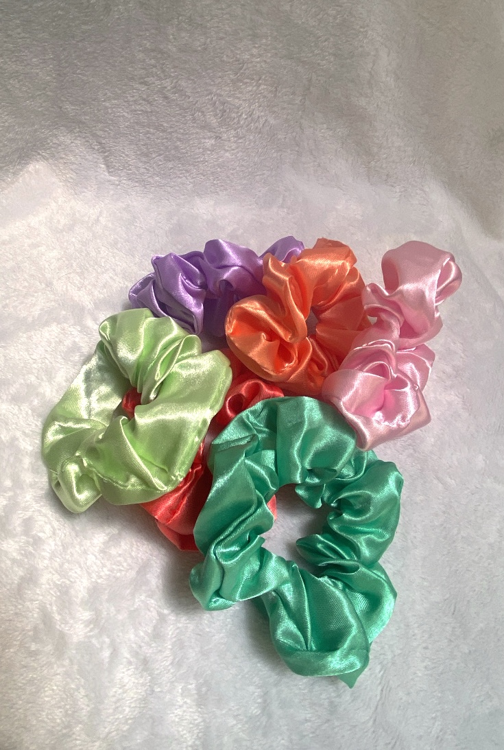 Scrunchies para el cabello de tela brillante.