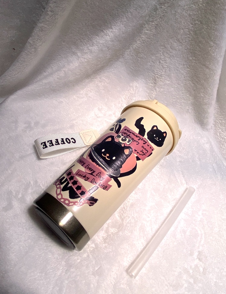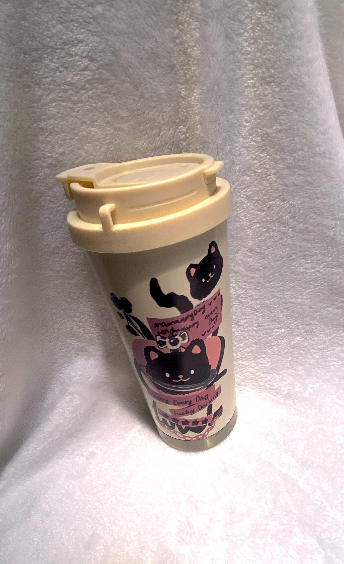 1 Termo de café aislada de 530ml con diseño de gato negro. (19cm x 7cm)